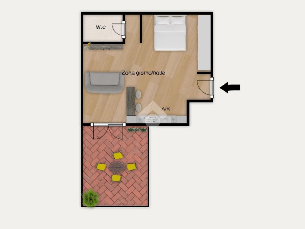 Via del Maggiolino, in comprensorio privato di recente costruzione, proponiamo in vendita ampio monolocale interamente arredato composto da zona giorno/notte, disimpegno, bagno non finestrato e corte privata mattonata. Completa la proprietà il posto auto privato scoperto.